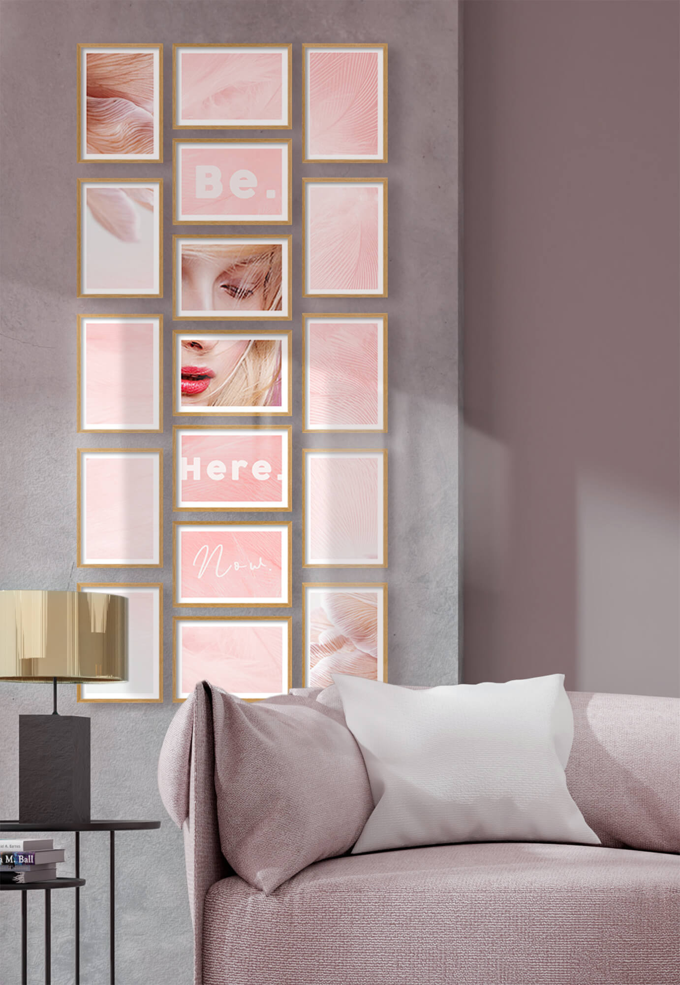 Nowoczesne galerie ścienne to prosty i efektowny sposób na aranżację każdego wnętrza. Dekoracyjny produkt pozwala stworzyć niebanalną kompozycję składającą się z 17 sztuk ramek. Wszystkie ramki zostały wykonane w 100% z drewna wysokiej jakości, dzięki czemu są trwałe i solidne. Galerie ścienne są lekkie i mają subtelny wygląd, co sprawia, że doskonale wyeksponują Twoje fotografie, grafiki oraz plakaty. Klasyczne profile o przekroju 11x14 mm sprawiają, że każda galeria ścienna będzie ponadczasowym dodatkiem do wnętrza. Warto podkreślić, że drewniane przekroje połączone zostały metodą “V-nail”, co wpływa na precyzyjne połączenie narożników.