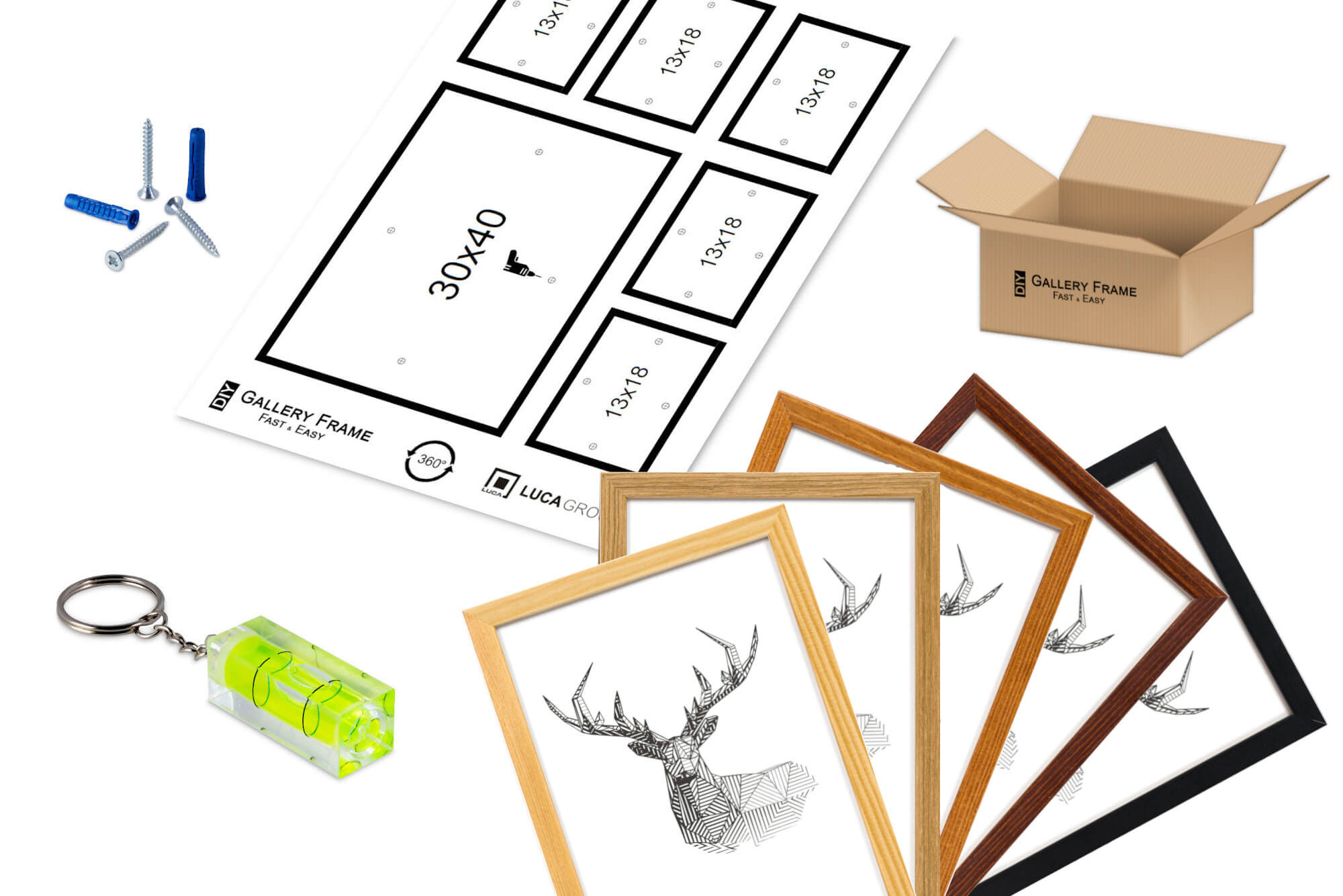 Zostań bohaterem w swoim domu i już jutro zamień swoją pustą ścianę w dekoracyjną kolekcję zdjęć! Szeroka gama produktów LUCA z serii DIY Gallery FrameTM to autorskie zaprojektowane we współpracy naszych artystów i grafików zestawy ramek do oprawy Twoich ulubionych zdjęć, plakatów i rysunków z przeznaczeniem do samodzielnego montażu. To bajecznie proste! W zestawie znajdziesz wszystkie potrzebne elementy takie jak ramki, szablon w skali 1:1 na ścianę, komplet montażowy z wkrętami, mini poziomicę oraz intuicyjną instrukcję!