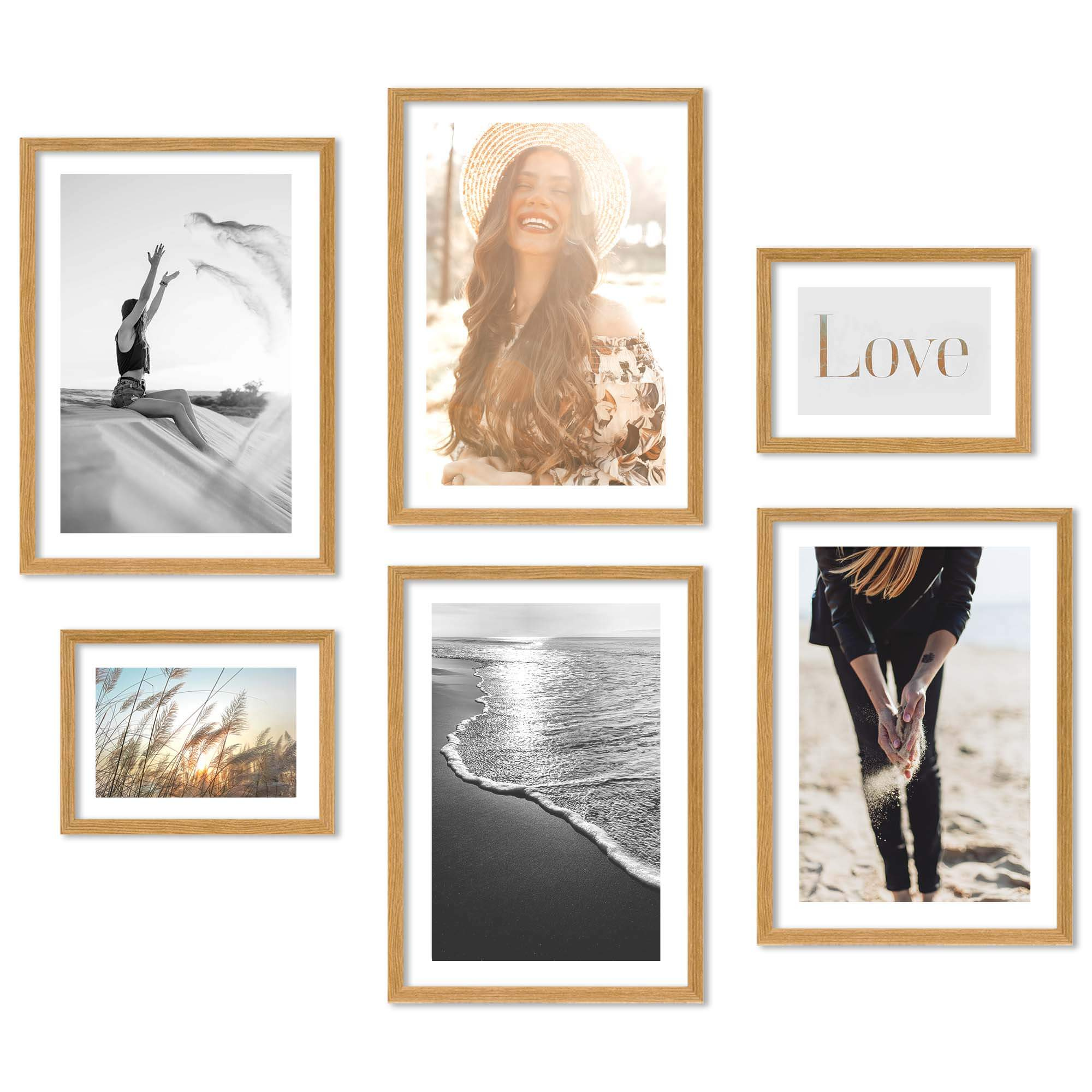 Rozmiar całkowity kompozycji: 67x77 cm Orientacja: możliwość aranżacji pozioma i pionowa Ramki: starannie wykonane w 100% z drewna sosnowego, trwale połączone poprzez V-nail. Przód oprawy: szkło mineralne o wysokiej przejrzystości, w zależności od rozmiaru ramki o grubości od 1,5 – do 2 mm. Tył oprawy: wykonany jest z twardej obustronnie gładkiej płyty HDF o grubości 1,8 – 2,5 mm. Blaszki mocujące: miękkie blaszki mocujące tył ramki, zapewniają możliwość wielokrotnego otwierania. Wieszak: stabilna metalowa zawieszka z możliwością ekspozycji pionowo lub poziomo. Akcesoria: szablon papierowy wydrukowany w skali 1:1, komplet wkrętów i kołków, mini poziomica, instrukcja, zestaw nie zawiera zdjęć i grafik. Opakowanie: ramki posiadają zabezpieczające narożniki tekturowe oraz folię ochronną. Gwarancja satysfakcji: Najwyższa jakość, gatunek I. Produkt polski.