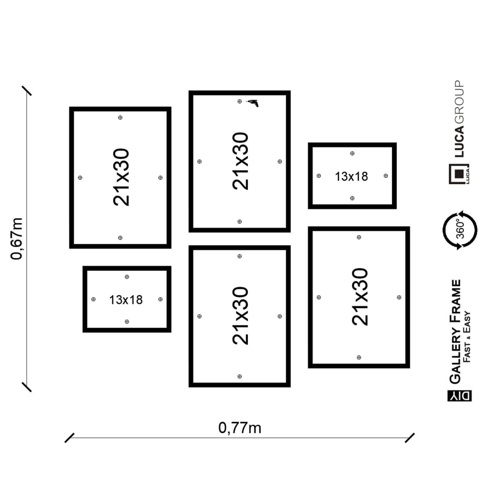 Zostań bohaterem w swoim domu i już jutro zamień swoją pustą ścianę w dekoracyjną kolekcję zdjęć! Szeroka gama produktów LUCA z serii DIY Gallery FrameTM to autorskie zaprojektowane we współpracy naszych artystów i grafików zestawy ramek do oprawy Twoich ulubionych zdjęć, plakatów i rysunków z przeznaczeniem do samodzielnego montażu. To bajecznie proste! W zestawie znajdziesz wszystkie potrzebne elementy takie jak ramki, szablon w skali 1:1 na ścianę, komplet montażowy z wkrętami, mini poziomicę oraz intuicyjną instrukcję!