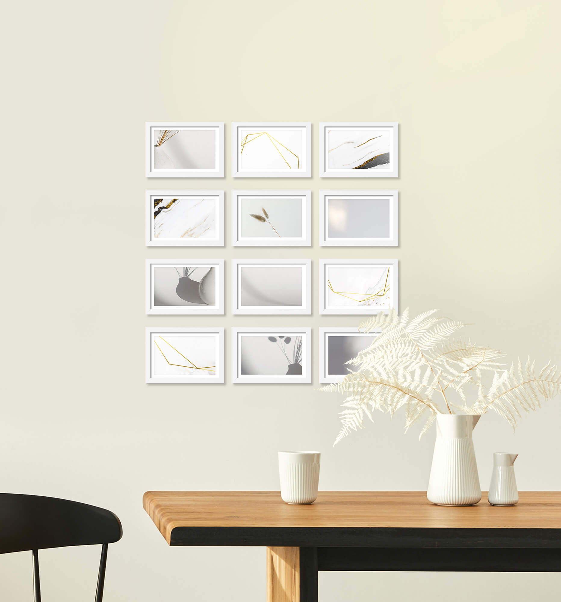 Nowoczesne galerie ścienne to prosty i efektowny sposób na aranżację każdego wnętrza. Dekoracyjny produkt pozwala stworzyć niebanalną kompozycję składającą się z 12 sztuk ramek. Wszystkie ramki zostały wykonane w 100% z drewna wysokiej jakości, dzięki czemu są trwałe i solidne. Galerie ścienne są lekkie i mają subtelny wygląd, co sprawia, że doskonale wyeksponują Twoje fotografie, grafiki oraz plakaty. Klasyczne profile o przekroju 11x14 mm sprawiają, że każda galeria ścienna będzie ponadczasowym dodatkiem do wnętrza. Warto podkreślić, że drewniane przekroje połączone zostały metodą “V-nail”, co wpływa na precyzyjne połączenie narożników.