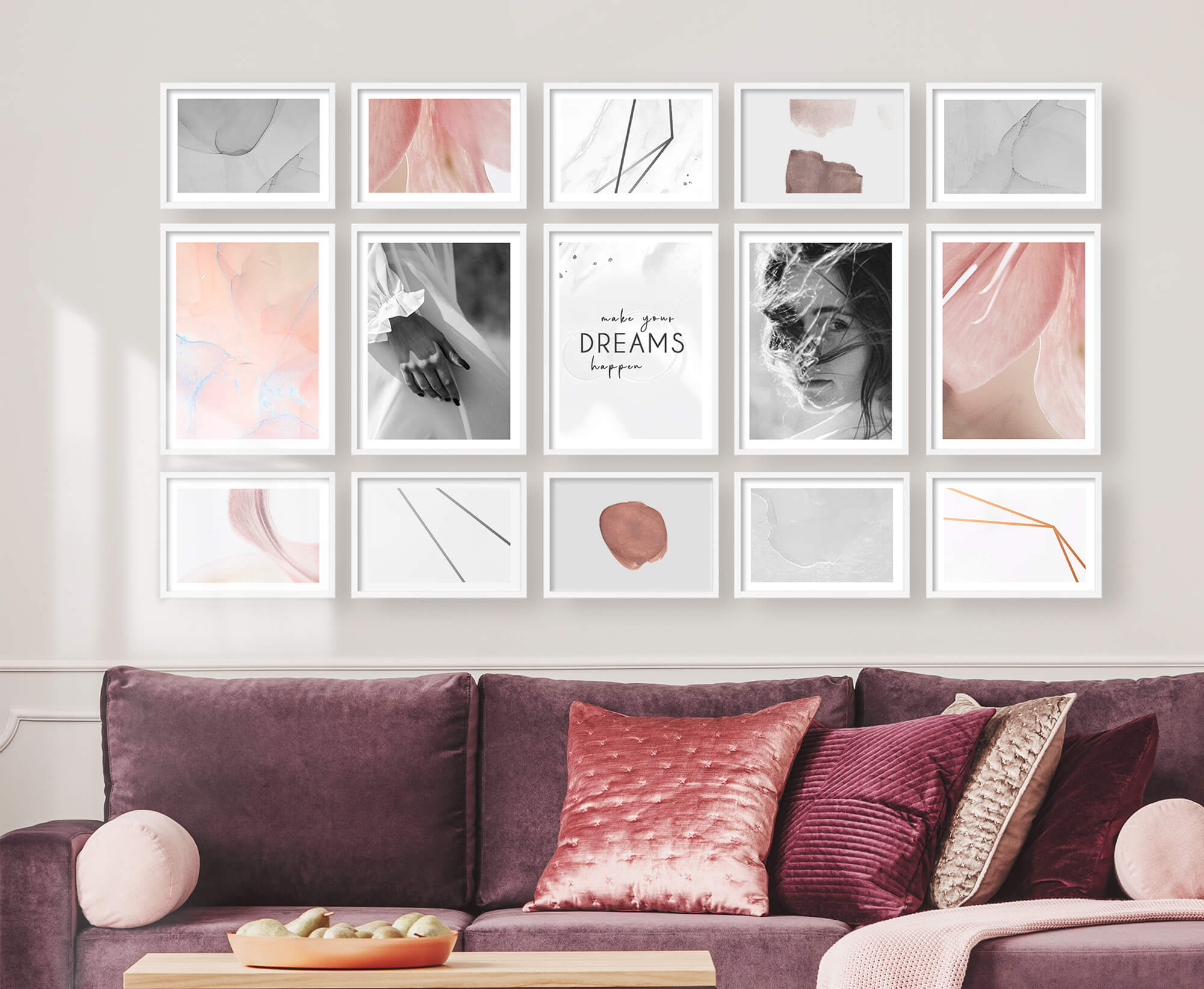 Nowoczesne galerie ścienne to prosty i efektowny sposób na aranżację każdego wnętrza. Dekoracyjny produkt pozwala stworzyć niebanalną kompozycję składającą się z 15 sztuk ramek. Wszystkie ramki zostały wykonane w 100% z drewna wysokiej jakości, dzięki czemu są trwałe i solidne. Galerie ścienne są lekkie i mają subtelny wygląd, co sprawia, że doskonale wyeksponują Twoje fotografie, grafiki oraz plakaty. Klasyczne profile o przekroju 11x14 mm sprawiają, że każda galeria ścienna będzie ponadczasowym dodatkiem do wnętrza. Warto podkreślić, że drewniane przekroje połączone zostały metodą “V-nail”, co wpływa na precyzyjne połączenie narożników.