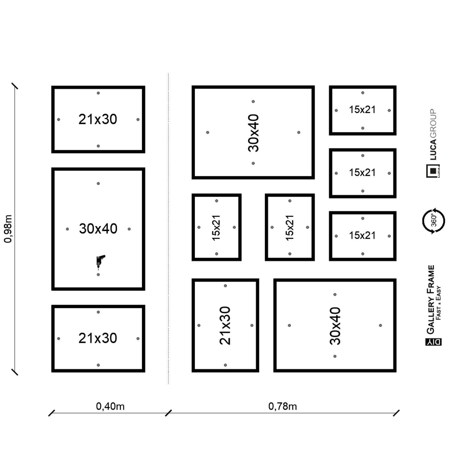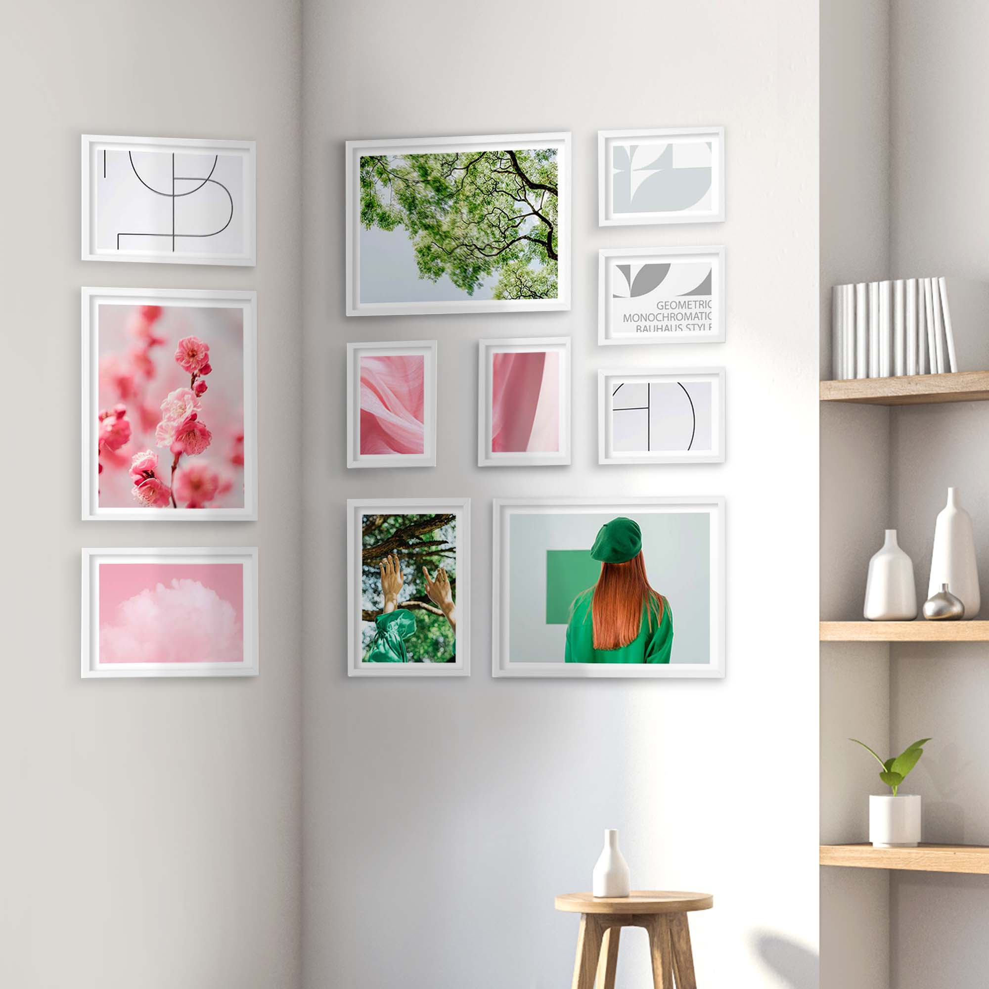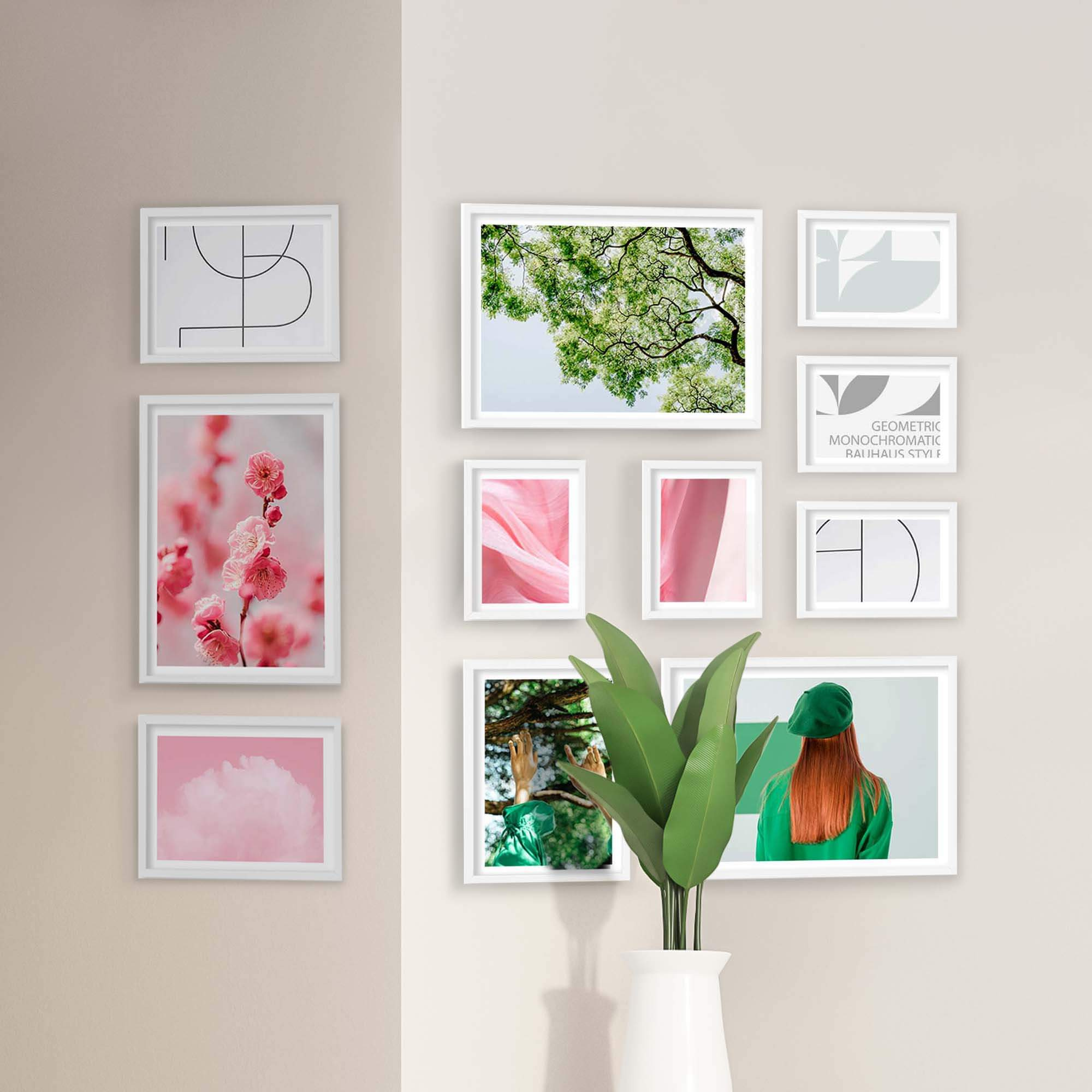 Nowoczesne galerie ścienne to prosty i efektowny sposób na aranżację każdego wnętrza. Dekoracyjny produkt pozwala stworzyć niebanalną kompozycję składającą się z 11 sztuk ramek. Wszystkie ramki zostały wykonane w 100% z drewna wysokiej jakości, dzięki czemu są trwałe i solidne. Galerie ścienne są lekkie i mają subtelny wygląd, co sprawia, że doskonale wyeksponują Twoje fotografie, grafiki oraz plakaty. Klasyczne profile o przekroju 11x14 mm sprawiają, że każda galeria ścienna będzie ponadczasowym dodatkiem do wnętrza. Warto podkreślić, że drewniane przekroje połączone zostały metodą “V-nail”, co wpływa na precyzyjne połączenie narożników.
