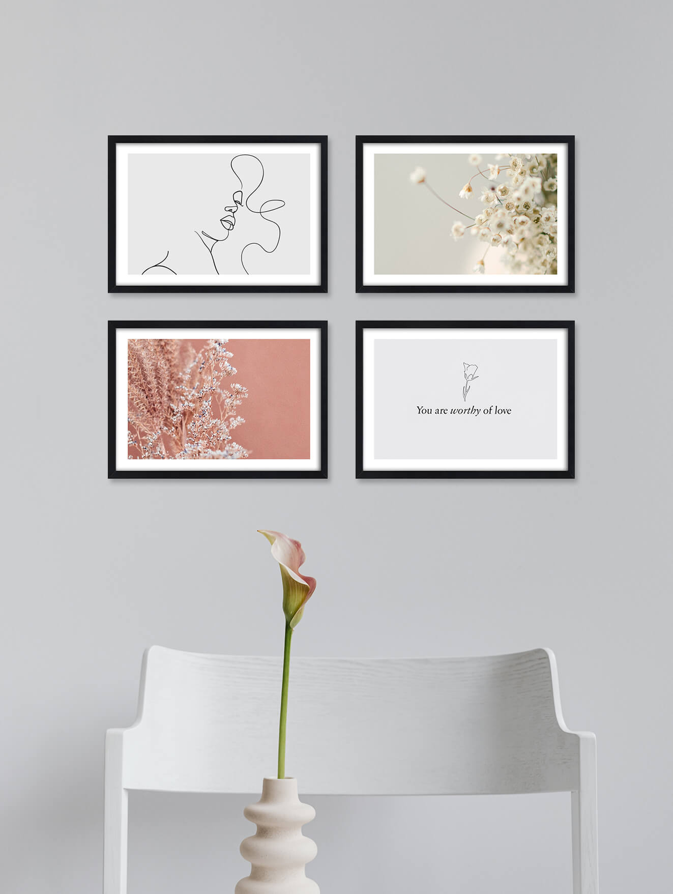 Nowoczesne galerie ścienne to prosty i efektowny sposób na aranżację każdego wnętrza. Dekoracyjny produkt pozwala stworzyć niebanalną kompozycję składającą się z 4 sztuk ramek. Wszystkie ramki zostały wykonane w 100% z drewna wysokiej jakości, dzięki czemu są trwałe i solidne. Galerie ścienne są lekkie i mają subtelny wygląd, co sprawia, że doskonale wyeksponują Twoje fotografie, grafiki oraz plakaty. Klasyczne profile o przekroju 11x14 mm sprawiają, że każda galeria ścienna będzie ponadczasowym dodatkiem do wnętrza. Warto podkreślić, że drewniane przekroje połączone zostały metodą “V-nail”, co wpływa na precyzyjne połączenie narożników.