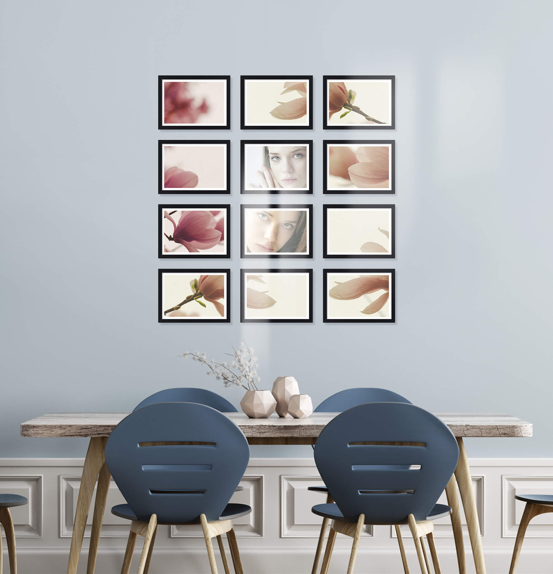 Nowoczesne galerie ścienne to prosty i efektowny sposób na aranżację każdego wnętrza. Dekoracyjny produkt pozwala stworzyć niebanalną kompozycję składającą się z 12 sztuk ramek. Wszystkie ramki zostały wykonane w 100% z drewna wysokiej jakości, dzięki czemu są trwałe i solidne. Galerie ścienne są lekkie i mają subtelny wygląd, co sprawia, że doskonale wyeksponują Twoje fotografie, grafiki oraz plakaty. Klasyczne profile o przekroju 11x14 mm sprawiają, że każda galeria ścienna będzie ponadczasowym dodatkiem do wnętrza. Warto podkreślić, że drewniane przekroje połączone zostały metodą “V-nail”, co wpływa na precyzyjne połączenie narożników.