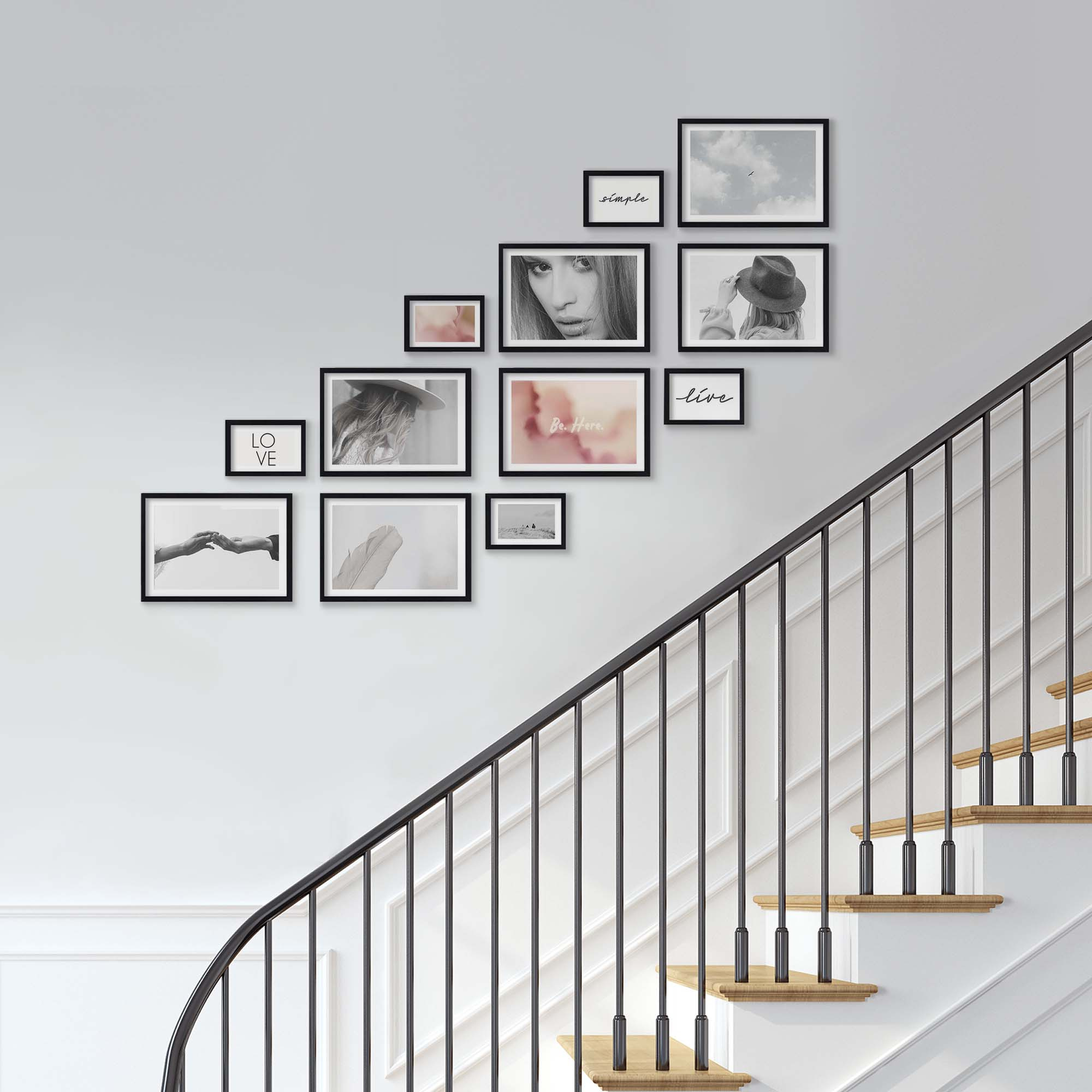 Nowoczesne galerie ścienne to prosty i efektowny sposób na aranżację ściany przy schodach. Dekoracyjny produkt pozwala stworzyć niebanalną kompozycję składającą się z 12 sztuk ramek. Wszystkie ramki zostały wykonane w 100% z drewna wysokiej jakości, dzięki czemu są trwałe i solidne. Galerie ścienne są lekkie i mają subtelny wygląd, co sprawia, że doskonale wyeksponują Twoje fotografie, grafiki oraz plakaty. Klasyczne profile o przekroju 11x14 mm sprawiają, że każda galeria ścienna będzie ponadczasowym dodatkiem do wnętrza. Warto podkreślić, że drewniane przekroje połączone zostały metodą “V-nail”, co wpływa na precyzyjne połączenie narożników.