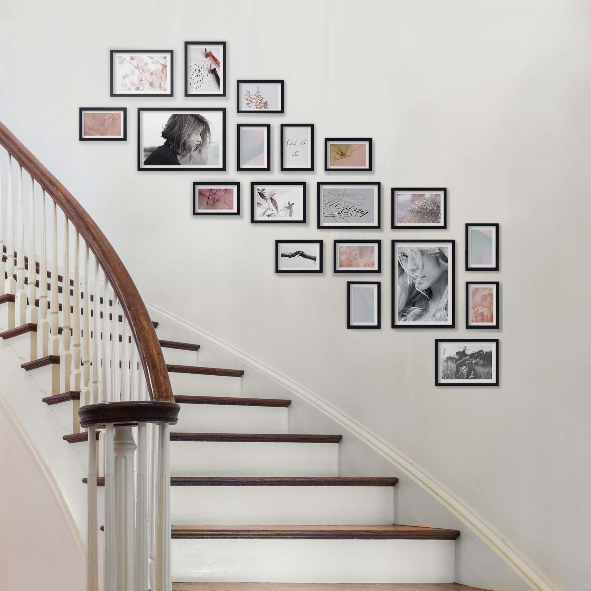Nowoczesne galerie ścienne to prosty i efektowny sposób na aranżację ściany przy schodach. Dekoracyjny produkt pozwala stworzyć niebanalną kompozycję składającą się z 19 sztuk ramek. Wszystkie ramki zostały wykonane w 100% z drewna wysokiej jakości, dzięki czemu są trwałe i solidne. Galerie ścienne są lekkie i mają subtelny wygląd, co sprawia, że doskonale wyeksponują Twoje fotografie, grafiki oraz plakaty. Klasyczne profile o przekroju 11x14 mm sprawiają, że każda galeria ścienna będzie ponadczasowym dodatkiem do wnętrza. Warto podkreślić, że drewniane przekroje połączone zostały metodą “V-nail”, co wpływa na precyzyjne połączenie narożników.