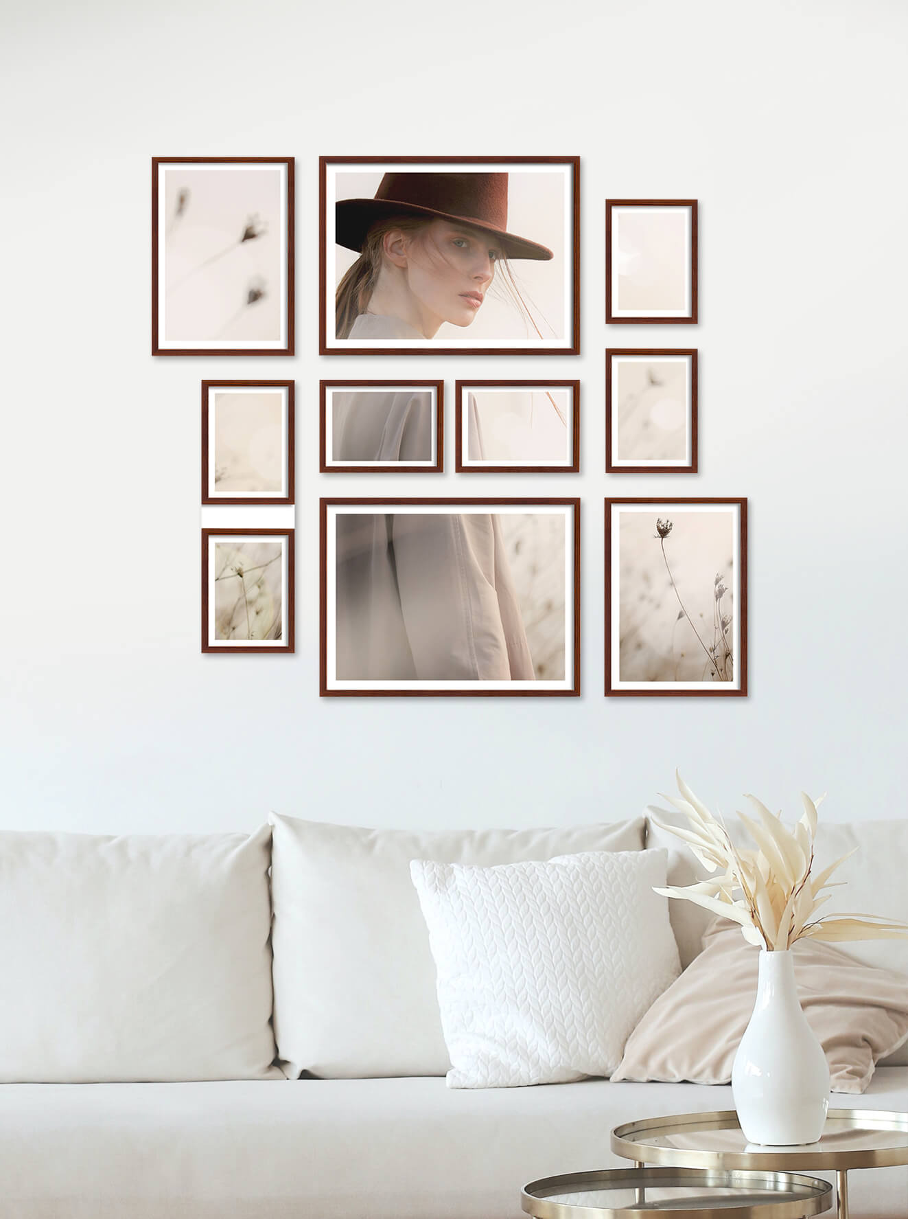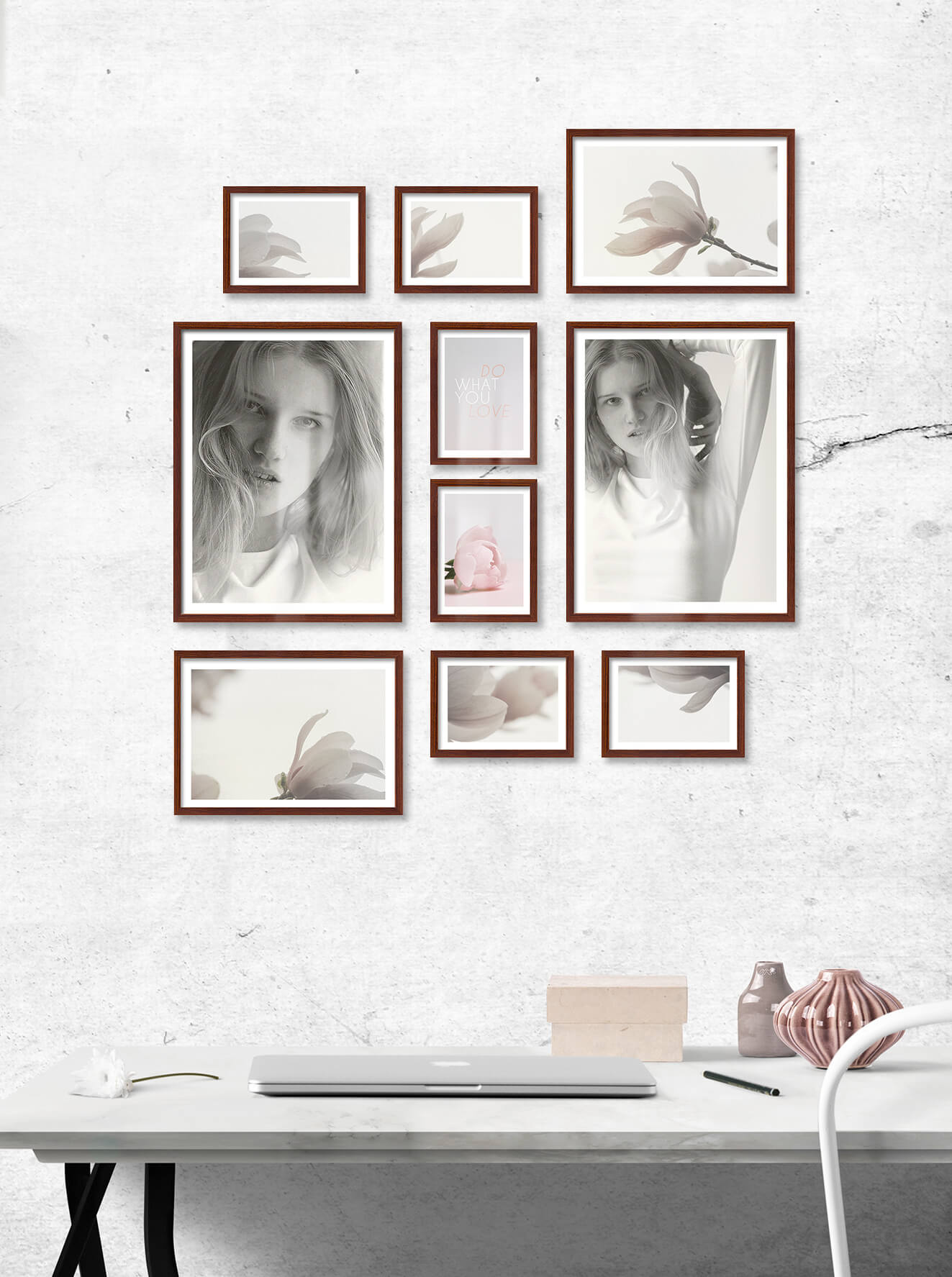 Nowoczesne galerie ścienne to prosty i efektowny sposób na aranżację każdego wnętrza. Dekoracyjny produkt pozwala stworzyć niebanalną kompozycję składającą się z 10 sztuk ramek. Wszystkie ramki zostały wykonane w 100% z drewna wysokiej jakości, dzięki czemu są trwałe i solidne. Galerie ścienne są lekkie i mają subtelny wygląd, co sprawia, że doskonale wyeksponują Twoje fotografie, grafiki oraz plakaty. Klasyczne profile o przekroju 11x14 mm sprawiają, że każda galeria ścienna będzie ponadczasowym dodatkiem do wnętrza. Warto podkreślić, że drewniane przekroje połączone zostały metodą “V-nail”, co wpływa na precyzyjne połączenie narożników.