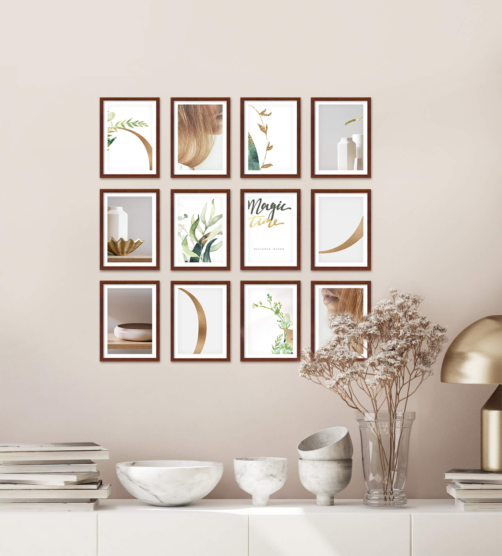 Nowoczesne galerie ścienne to prosty i efektowny sposób na aranżację każdego wnętrza. Dekoracyjny produkt pozwala stworzyć niebanalną kompozycję składającą się z 12 sztuk ramek. Wszystkie ramki zostały wykonane w 100% z drewna wysokiej jakości, dzięki czemu są trwałe i solidne. Galerie ścienne są lekkie i mają subtelny wygląd, co sprawia, że doskonale wyeksponują Twoje fotografie, grafiki oraz plakaty. Klasyczne profile o przekroju 11x14 mm sprawiają, że każda galeria ścienna będzie ponadczasowym dodatkiem do wnętrza. Warto podkreślić, że drewniane przekroje połączone zostały metodą “V-nail”, co wpływa na precyzyjne połączenie narożników.