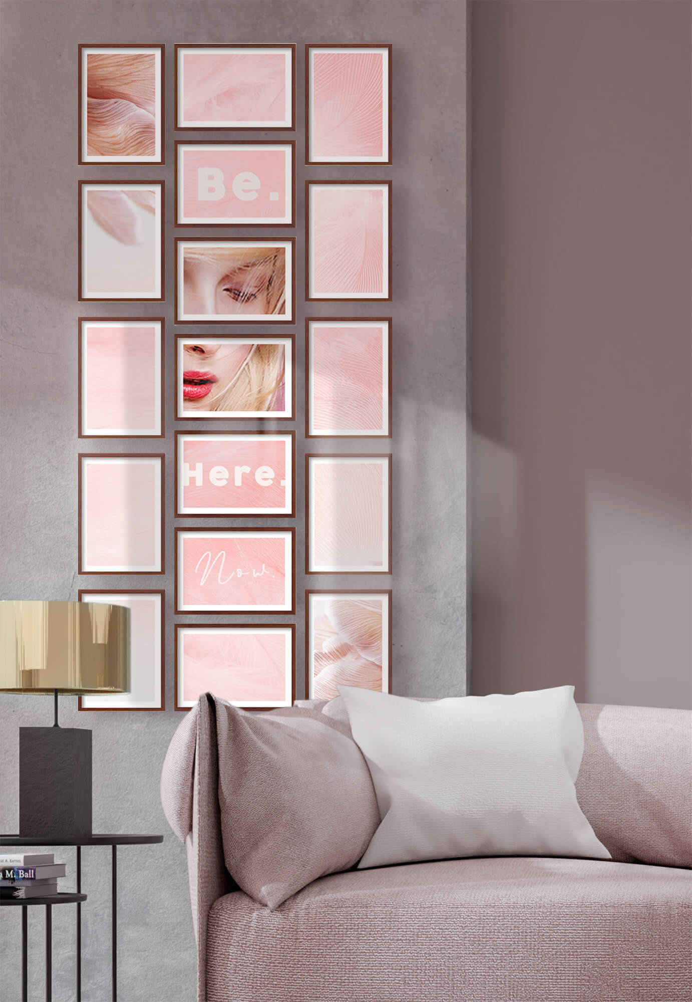 Nowoczesne galerie ścienne to prosty i efektowny sposób na aranżację każdego wnętrza. Dekoracyjny produkt pozwala stworzyć niebanalną kompozycję składającą się z 17 sztuk ramek. Wszystkie ramki zostały wykonane w 100% z drewna wysokiej jakości, dzięki czemu są trwałe i solidne. Galerie ścienne są lekkie i mają subtelny wygląd, co sprawia, że doskonale wyeksponują Twoje fotografie, grafiki oraz plakaty. Klasyczne profile o przekroju 11x14 mm sprawiają, że każda galeria ścienna będzie ponadczasowym dodatkiem do wnętrza. Warto podkreślić, że drewniane przekroje połączone zostały metodą “V-nail”, co wpływa na precyzyjne połączenie narożników.