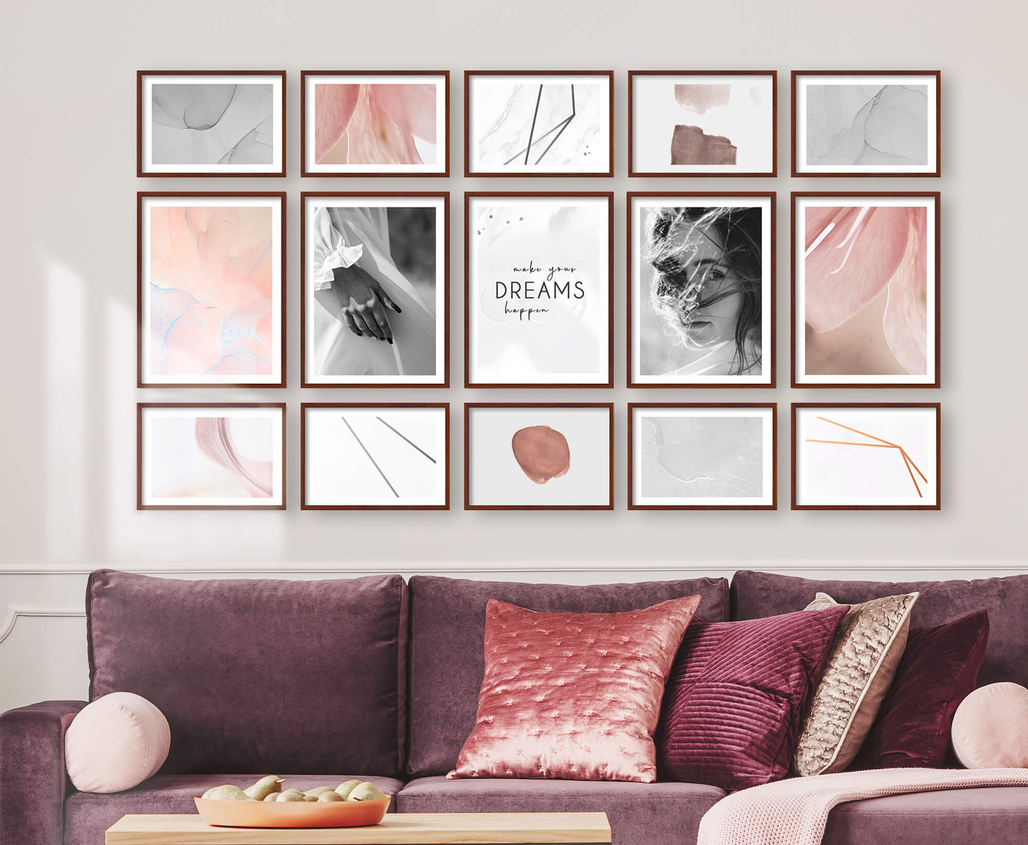 Nowoczesne galerie ścienne to prosty i efektowny sposób na aranżację każdego wnętrza. Dekoracyjny produkt pozwala stworzyć niebanalną kompozycję składającą się z 15 sztuk ramek. Wszystkie ramki zostały wykonane w 100% z drewna wysokiej jakości, dzięki czemu są trwałe i solidne. Galerie ścienne są lekkie i mają subtelny wygląd, co sprawia, że doskonale wyeksponują Twoje fotografie, grafiki oraz plakaty. Klasyczne profile o przekroju 11x14 mm sprawiają, że każda galeria ścienna będzie ponadczasowym dodatkiem do wnętrza. Warto podkreślić, że drewniane przekroje połączone zostały metodą “V-nail”, co wpływa na precyzyjne połączenie narożników.