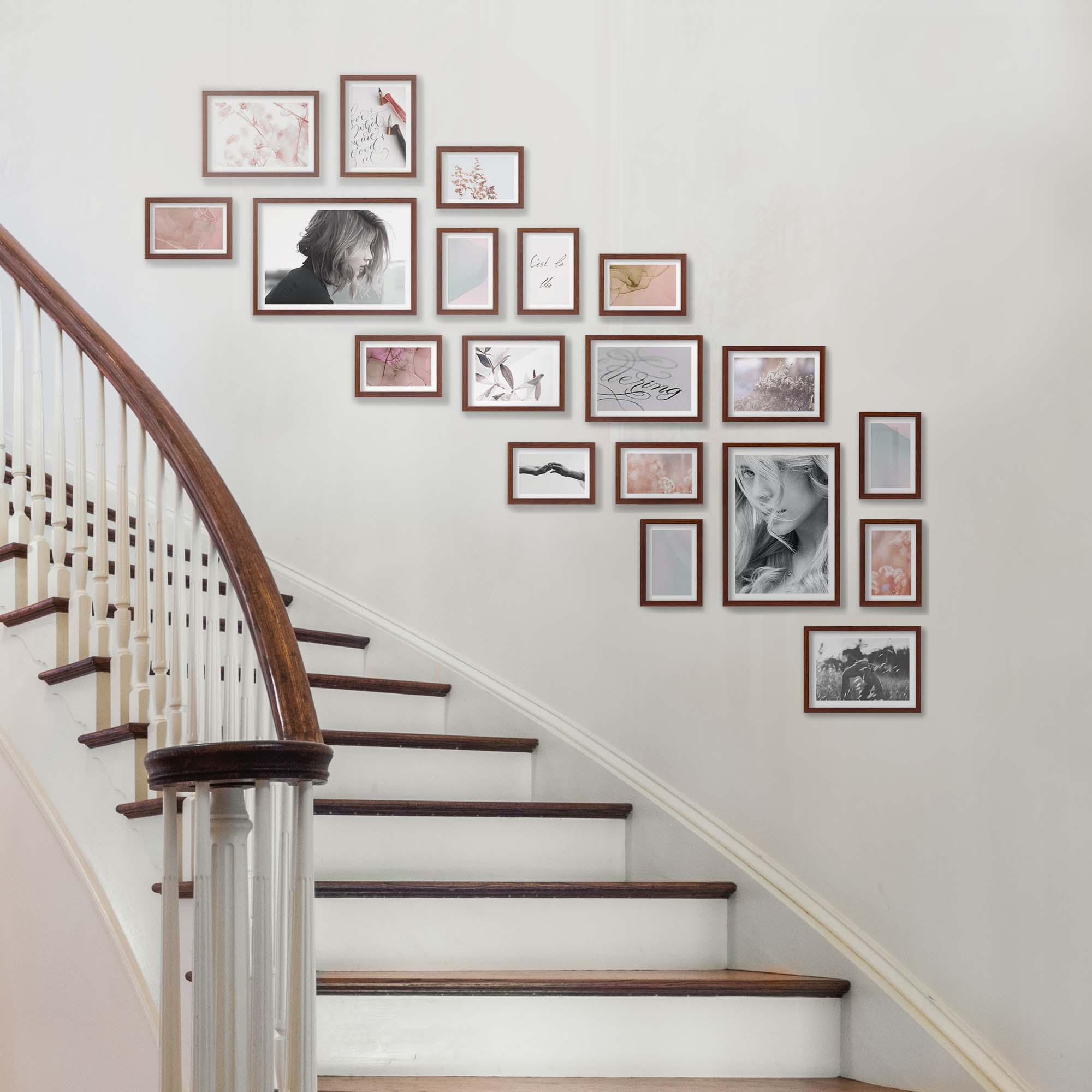Nowoczesne galerie ścienne to prosty i efektowny sposób na aranżację ściany przy schodach. Dekoracyjny produkt pozwala stworzyć niebanalną kompozycję składającą się z 19 sztuk ramek. Wszystkie ramki zostały wykonane w 100% z drewna wysokiej jakości, dzięki czemu są trwałe i solidne. Galerie ścienne są lekkie i mają subtelny wygląd, co sprawia, że doskonale wyeksponują Twoje fotografie, grafiki oraz plakaty. Klasyczne profile o przekroju 11x14 mm sprawiają, że każda galeria ścienna będzie ponadczasowym dodatkiem do wnętrza. Warto podkreślić, że drewniane przekroje połączone zostały metodą “V-nail”, co wpływa na precyzyjne połączenie narożników.