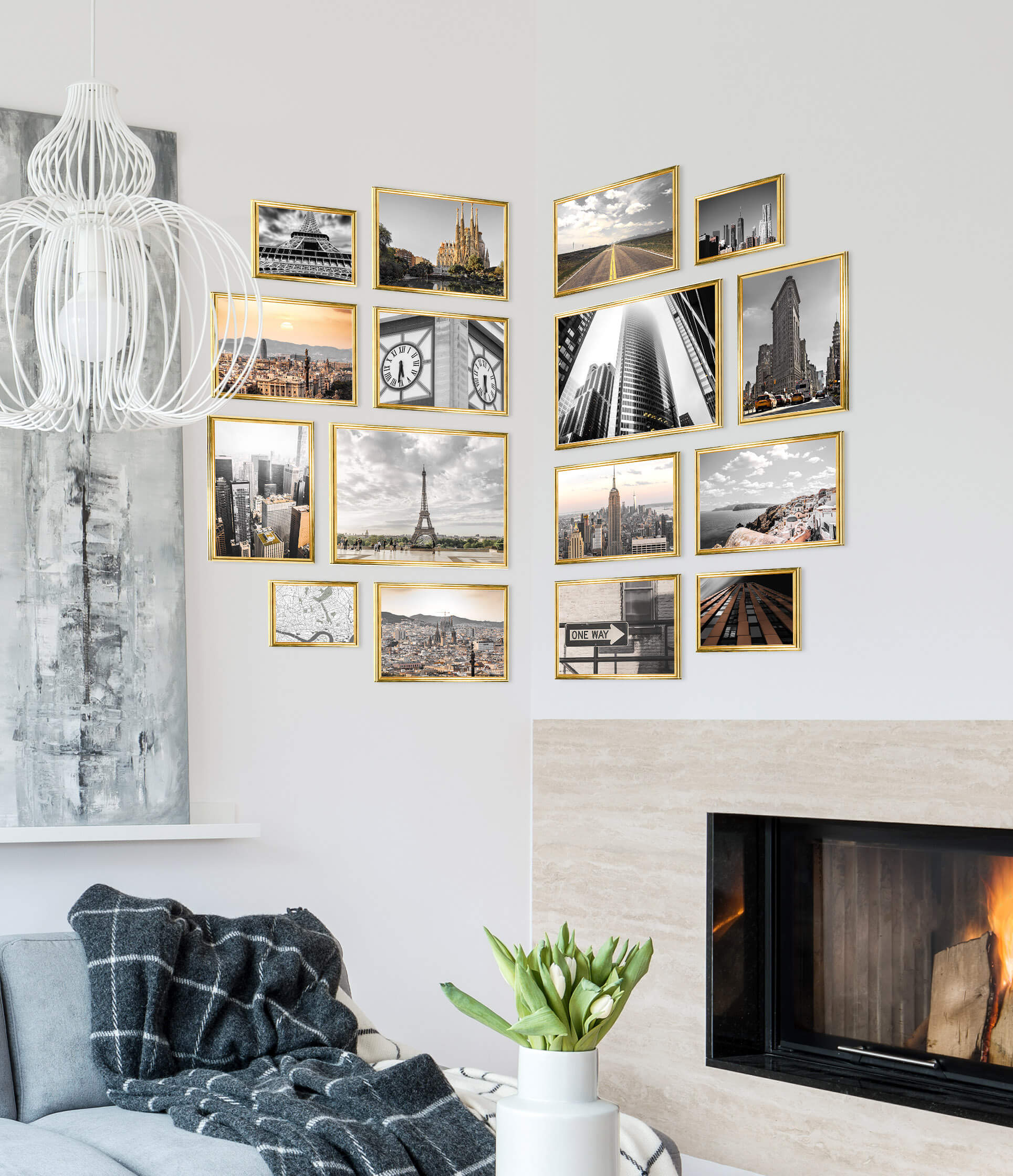 Zestaw ramek - galeria ścienna na zdjęcia w kolorze złotym HIT 1Z GF0009-corner
