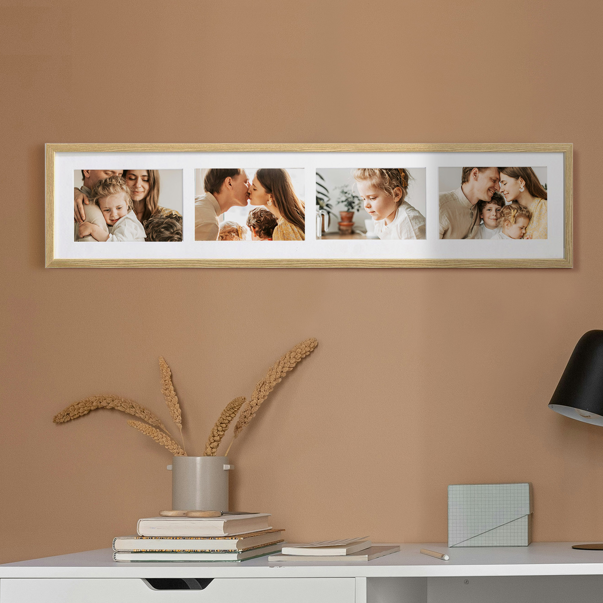 Nowoczesna, prosta w formie w 100% drewniana foto galeria w kolorze naturalnego drewna o przekroju profilu ramy 20x13 mm. Doskonała propozycja do oprawy kilku zdjęć w jednej ramie. Foto galeria wyposażona jest w jasne passe partout które pozwala na umieszczenie 4 fotografii w rozmiarze 13x18. Ramka drewniana wykonana jest z drewna sosnowego lakierowana w kolorze naturalnego drewna. Foto galeria Natural 18x86 dostępna jest również w innych kolorach: białym, czarnym i naturalnym.