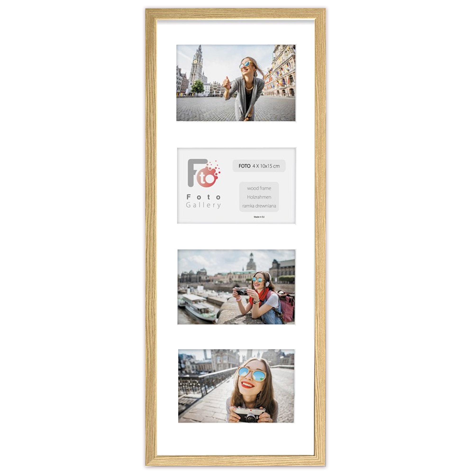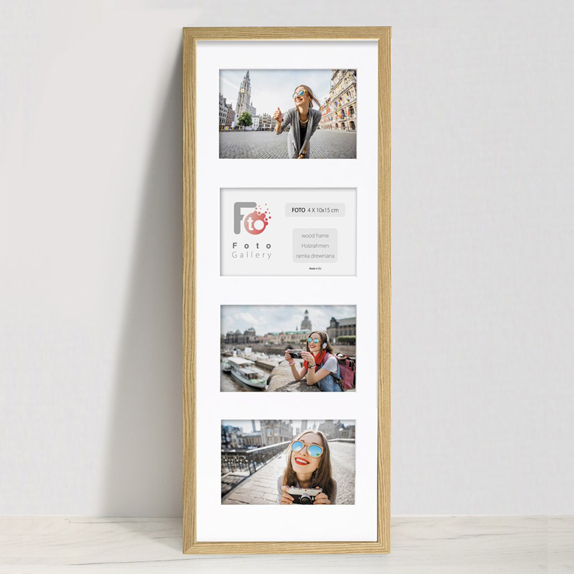 Nowoczesna, prosta w formie w 100% drewniana foto galeria w kolorze naturalnego drewna o przekroju profilu ramy 20x13 mm. Doskonała propozycja do oprawy kilku zdjęć w jednej ramie. Foto galeria wyposażona jest w jasne passe partout które pozwala na umieszczenie 4 fotografii w rozmiarze 10x15. Ramka drewniana wykonana jest z drewna sosnowego lakierowana w kolorze naturalnego drewna. Foto galeria Natural 20x55 dostępna jest również w innych kolorach: białym, czarnym i naturalnym.
