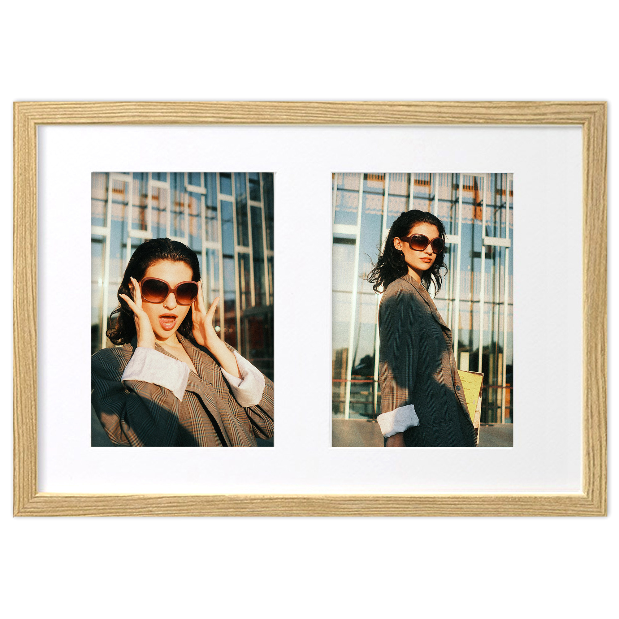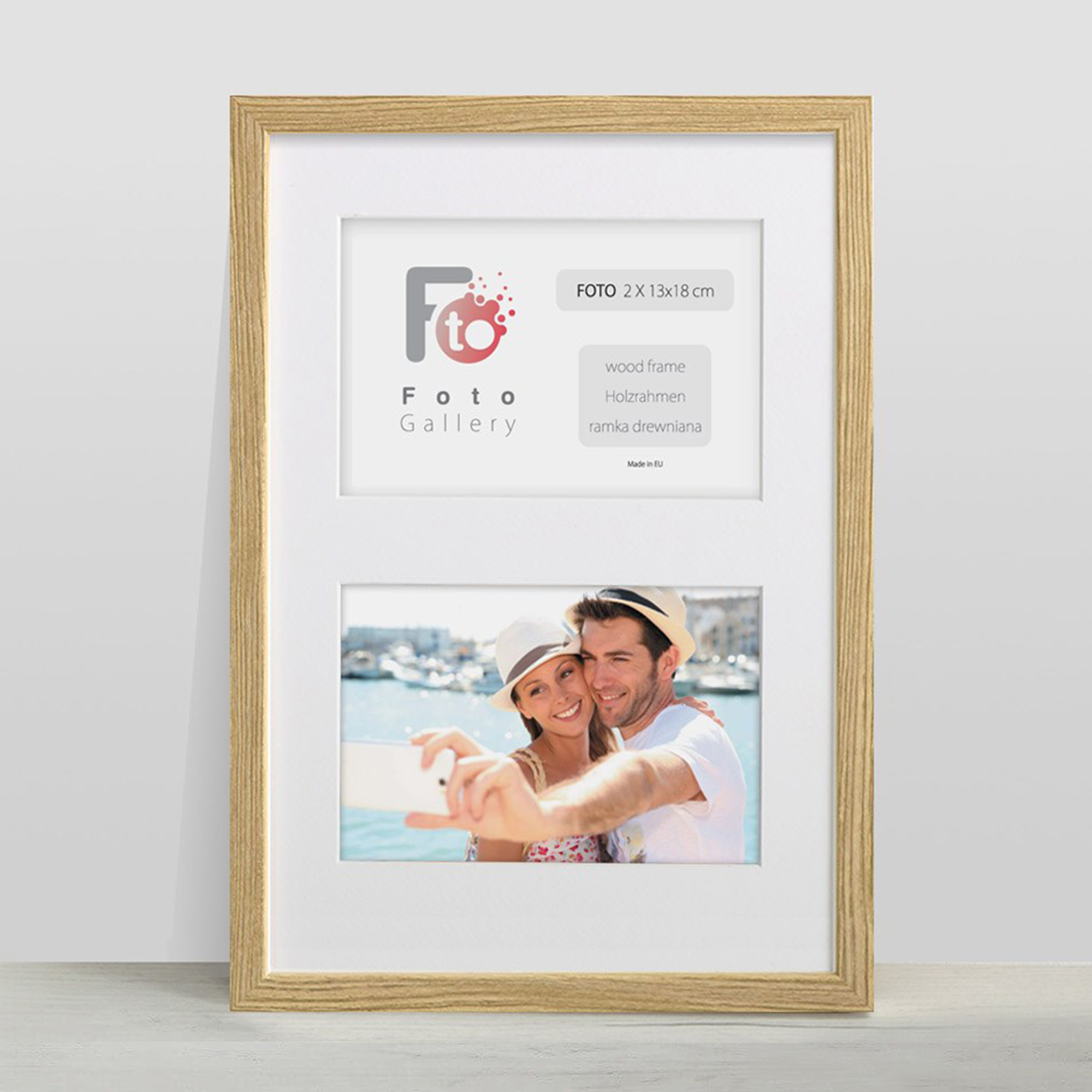 - Foto galeria drewniana ramka z passe partout na kilka zdjęć. Do oprawy zdjęć 2 x 13x18cm. Model: Natural 23x35