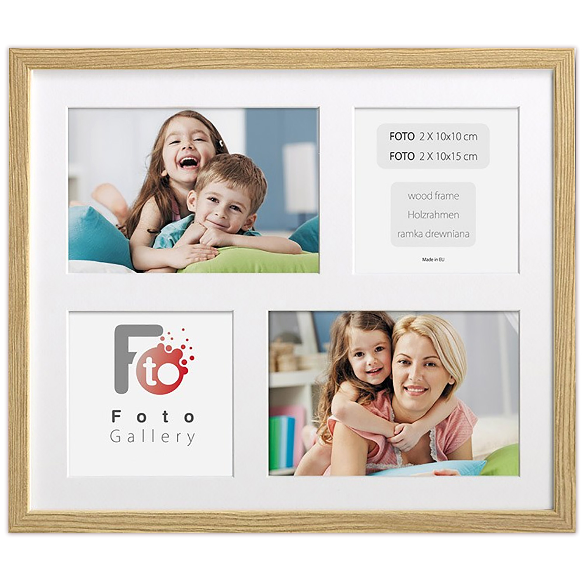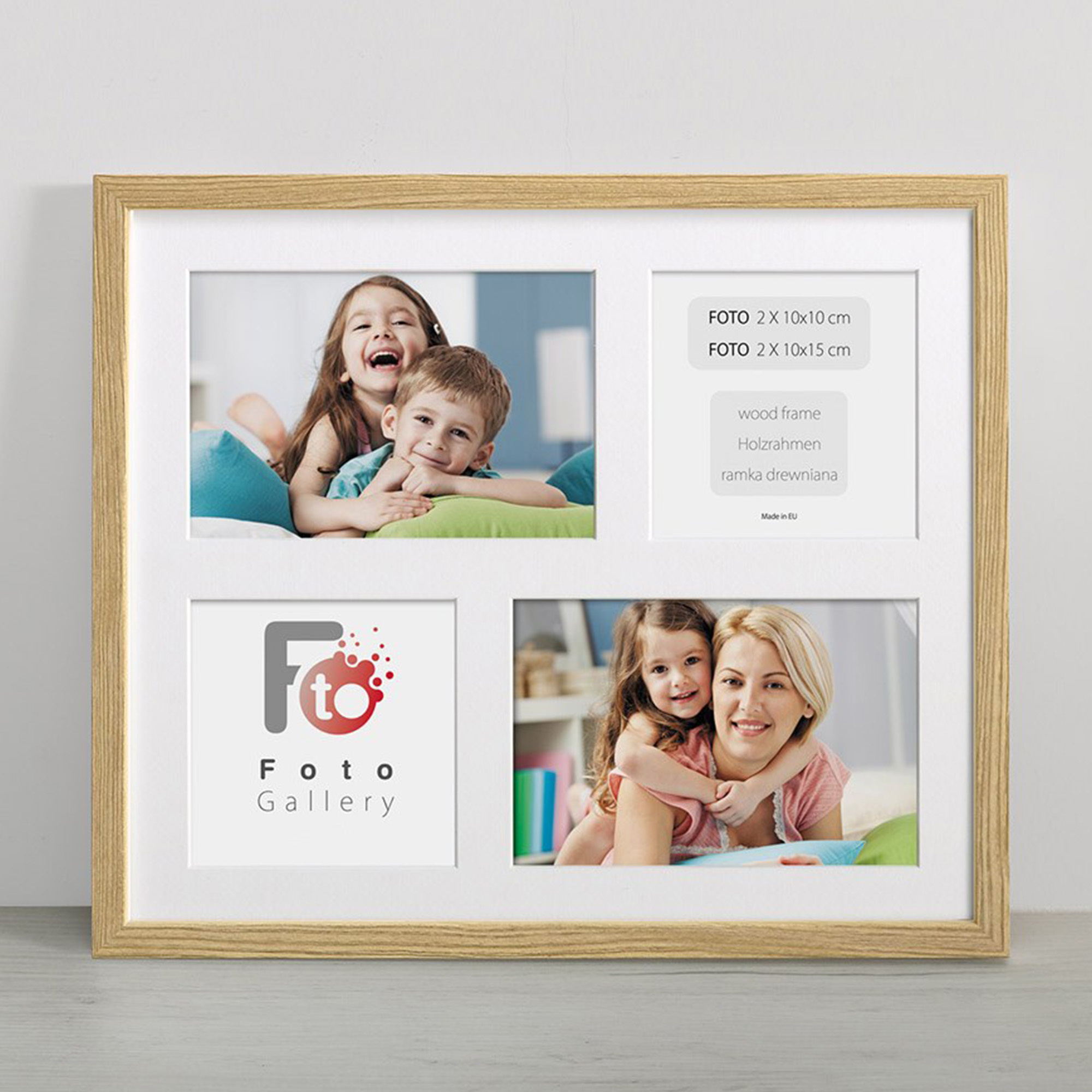 Nowoczesna, prosta w formie w 100% drewniana foto galeria w kolorze naturalnego drewna o przekroju profilu ramy 20x13 mm. Doskonała propozycja do oprawy kilku zdjęć w jednej ramie. Foto galeria wyposażona jest w jasne passe partout które pozwala na umieszczenie 4 fotografii w rozmiarze 2 x 10x10, 2 x 10x15. Ramka drewniana wykonana jest z drewna sosnowego lakierowana w kolorze naturalnego drewna. Foto galeria Natural 26x31 dostępna jest również w innych kolorach: białym, czarnym i naturalnym.