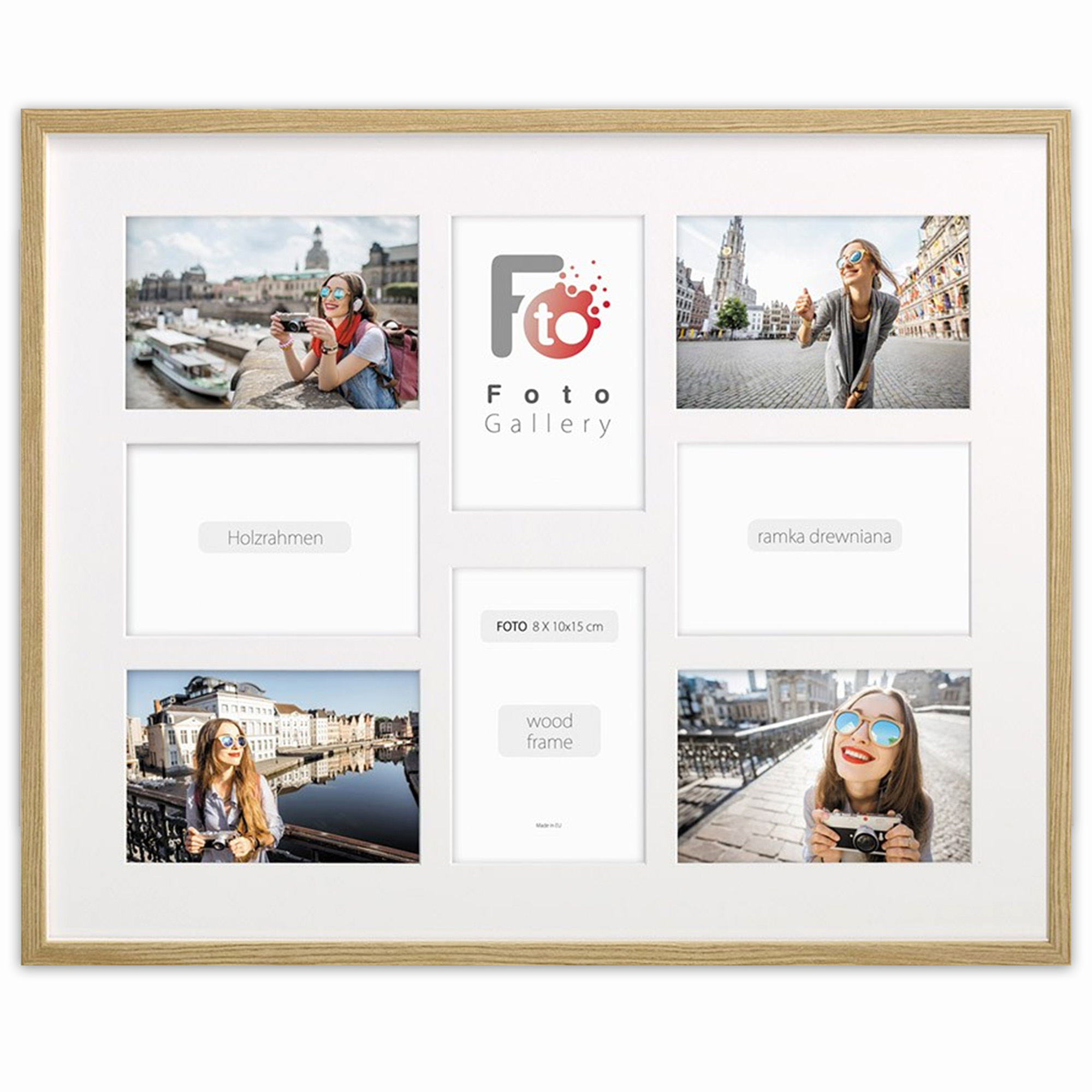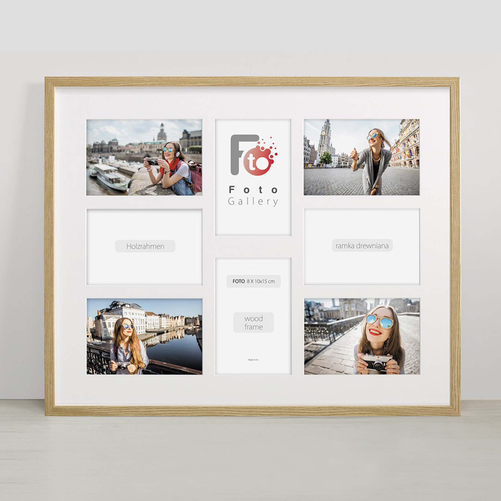 Nowoczesna, prosta w formie w 100% drewniana foto galeria w kolorze naturalnego drewna o przekroju profilu ramy 20x13 mm. Doskonała propozycja do oprawy kilku zdjęć w jednej ramie. Foto galeria wyposażona jest w jasne passe partout które pozwala na umieszczenie 8 fotografii w rozmiarze 10x15. Ramka drewniana wykonana jest z drewna sosnowego lakierowana w kolorze naturalnego drewna. Foto galeria Natural 40x50 A dostępna jest również w innych kolorach: białym, czarnym i naturalnym.