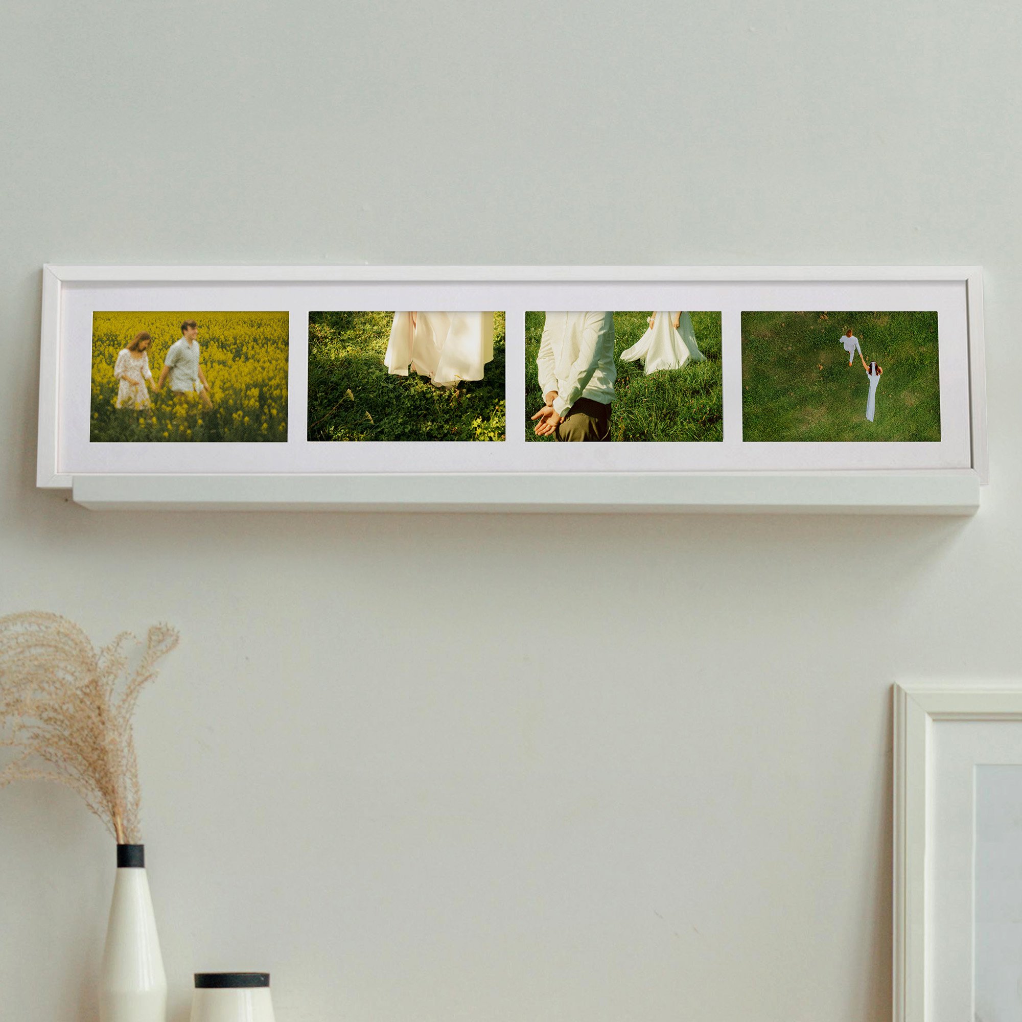 Nowoczesna, prosta w formie w 100% drewniana foto galeria w białym kolorze o przekroju profilu ramy 20x13 mm. Doskonała propozycja do oprawy kilku zdjęć w jednej ramie. Foto galeria wyposażona jest w jasne passe partout które pozwala na umieszczenie 4 fotografii w rozmiarze 10x15. Ramka drewniana wykonana jest z drewna sosnowego lakierowana w białym kolorze. Foto galeria White 15x68 dostępna jest również w innych kolorach: białym, czarnym i naturalnym.