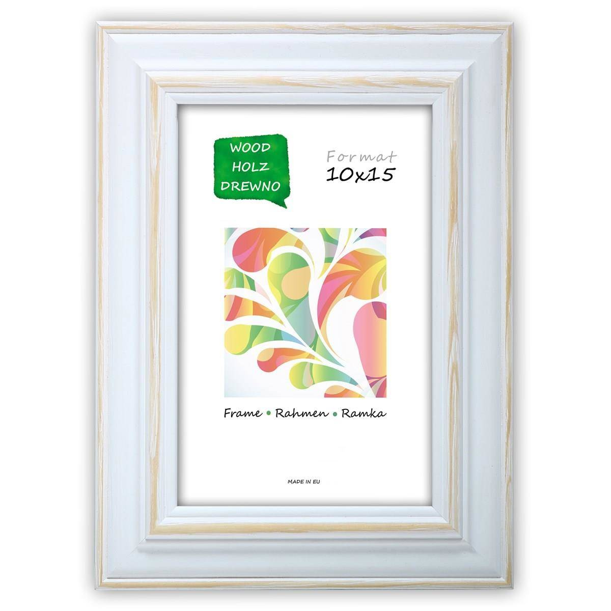 Ramka drewniana MAROTTA 2815 - 10x15 cm - fotoramka na zdjęcia - kolor biały z przetarciami