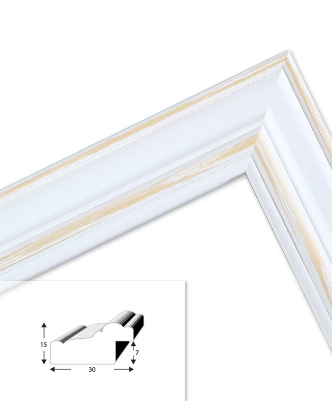 Rustykalna fotoramka w białym kolorze z przetarciami o przekroju profilu 30x15 mm wykonana w 100% z drewna. Przeznaczona jest do oprawy fotografii, plakatów i dyplomów. W zależności od formatu wyposażona jest w szkło mineralne lub bezbarwne szkło organiczne - wysokiej jakości plexi. Plecki wykonane są z twardej płyty HDF. Ramki na zdjęcia do rozmiaru 18x24 cm dodatkowo posiadają stopkę / nóżkę która pozwala eksponować oprawiony obraz na biurku lub regale. Ramka drewniana MAROTTA dostępna jest w rozmiarach od 10x15 cm do 50x70 cm.